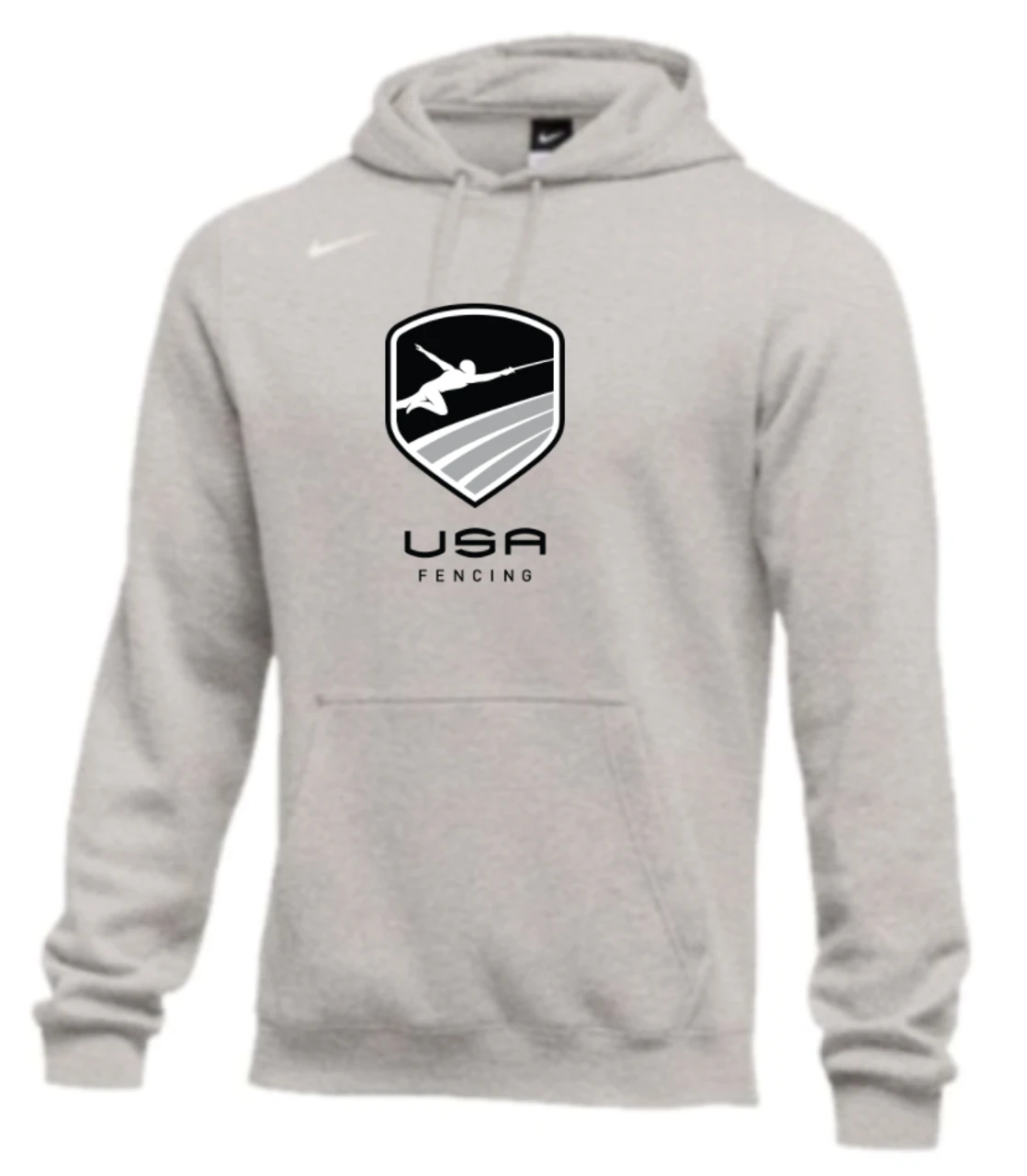 Nike Men’s USA Fencing Club Fleece Pullover Hoodie – Heather Grey/Black – USA Fencing Hoodie delivers the soft comfort of French terry fabric in a classic design. It’s a versatile layer ideal for the gym, practice or for every day wear. ** Please allow 10 business days from order date for production** **THIS ITEM IS NOT AVAILABLE FOR EXPRESS SHIPPING**