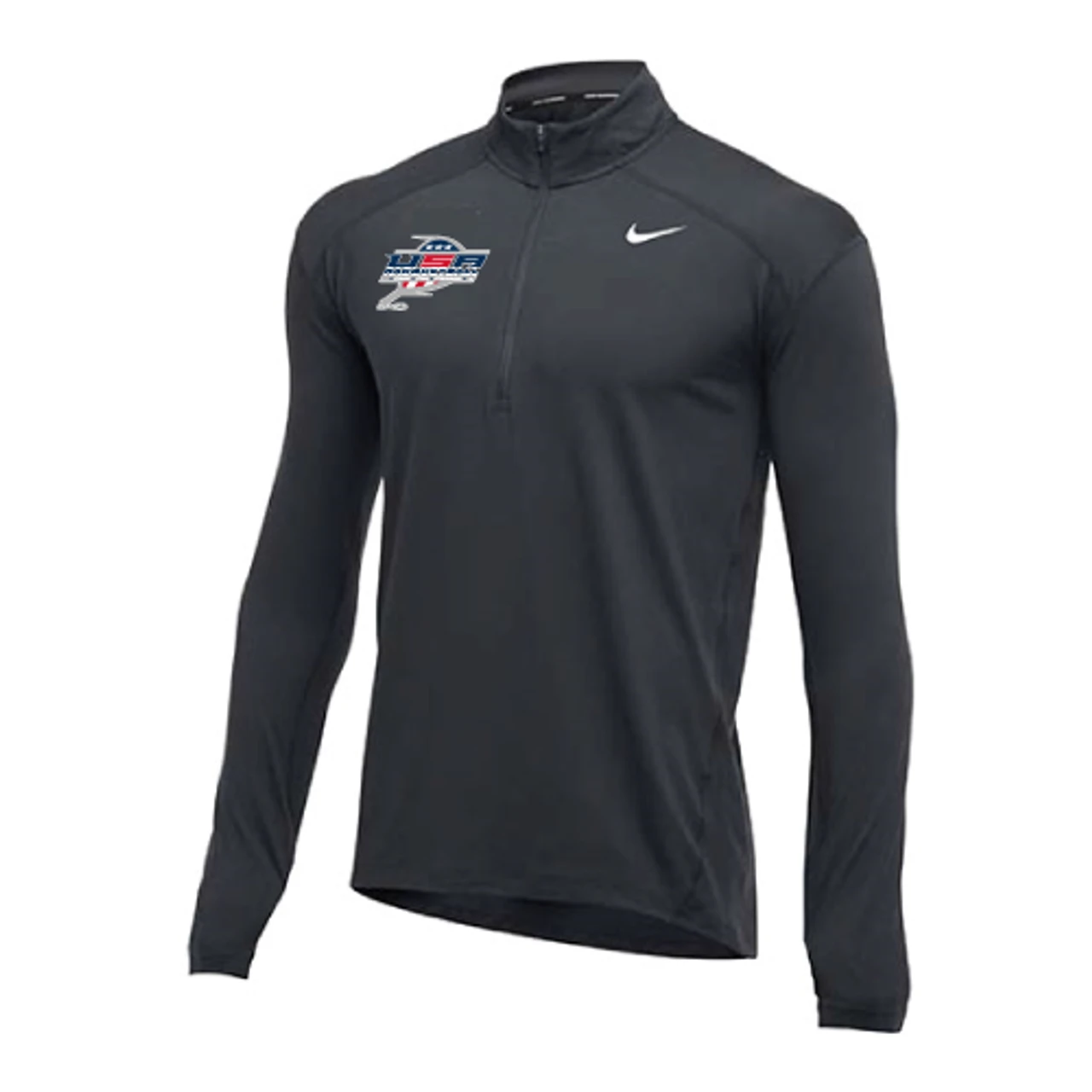 Nike Men’s USA Racquetball 1/2 Zip Top – Charcoal – Nike Dri-FIT technology helps you stay dry and comfortable. 1/2-zip design with a mock neck provides versatile coverage. Interior tape moves smoothly against your skin. Swoosh design trademark is printed on the right chest. 100% POLYESTER.