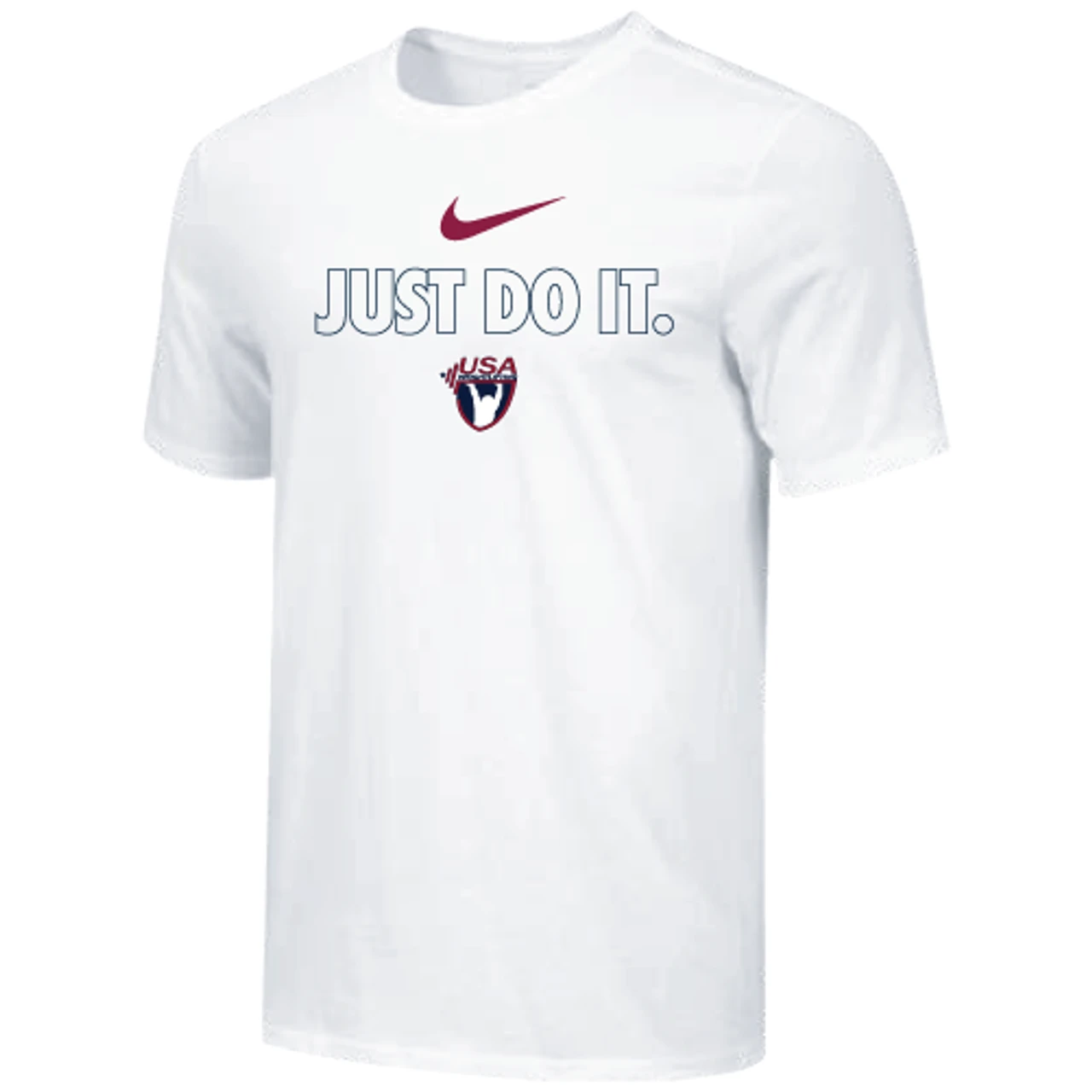 Nike Men’s USA Weightlifting Just Do It Tee – White – Form and function combine for a modernized look with less bulk in the Nike 100% Premium Ring Spun Cotton Tee.