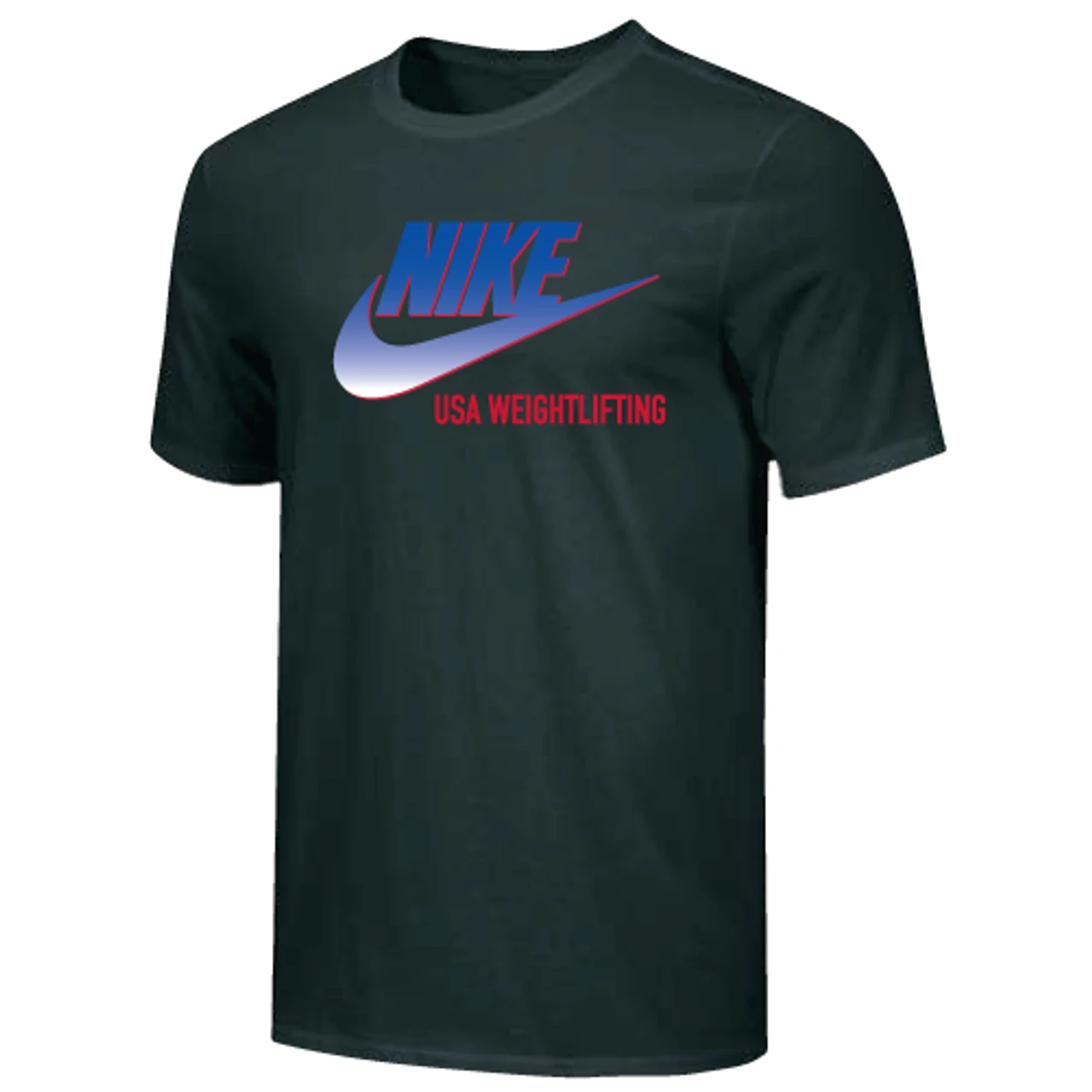 Nike Men’s USA Weightlifting Nike Swoosh Tee – Black/Blue/Red – Form and function combine for a modernized look with less bulk in the Nike 100% Premium Ring Spun Cotton Tee.