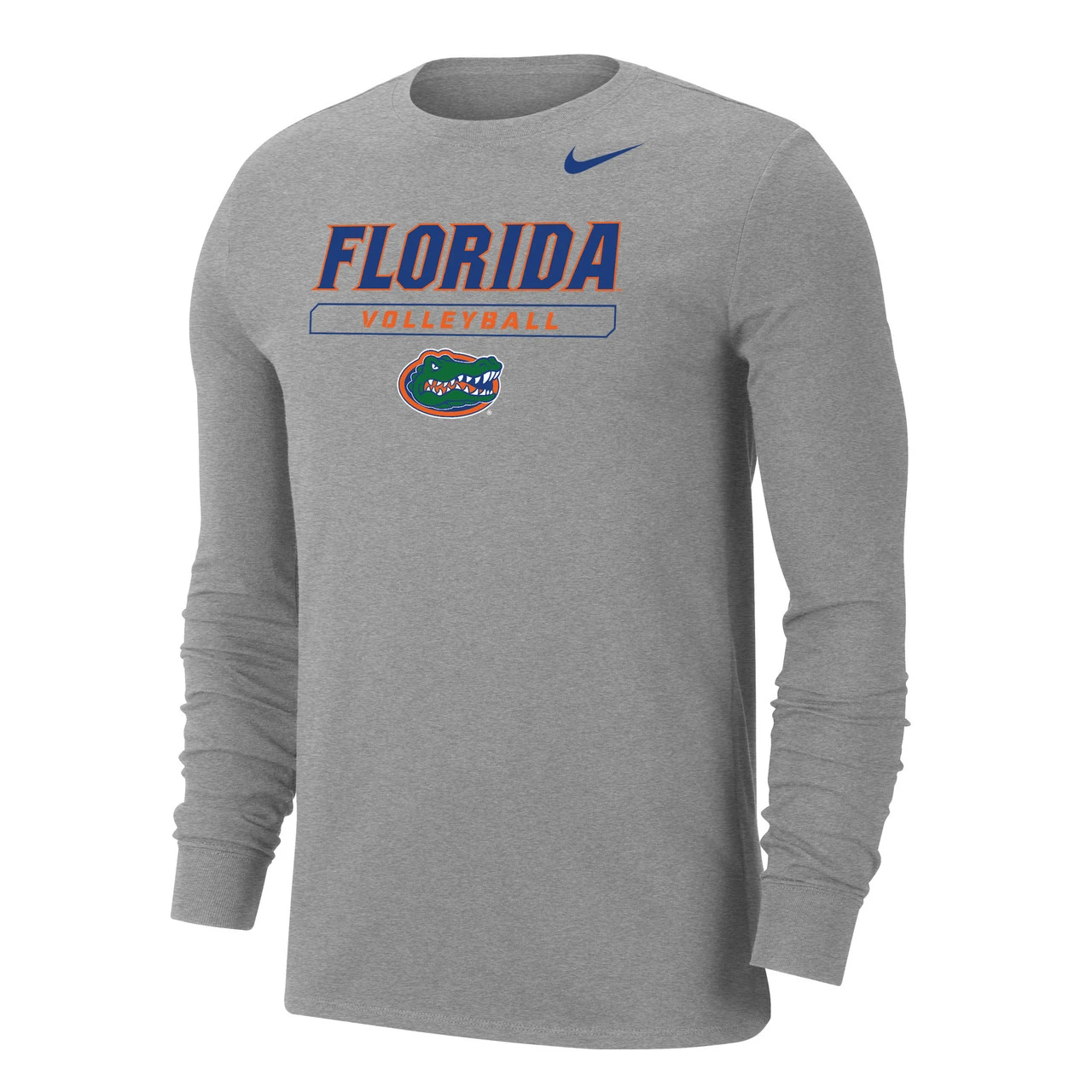 Nike Men’s Volleyball University of Florida Core Long Sleeve Tee – Dark Heather – Form and function combine for a modernized look with less bulk in the Nike 100% Premium Ring Spun Cotton Tee.