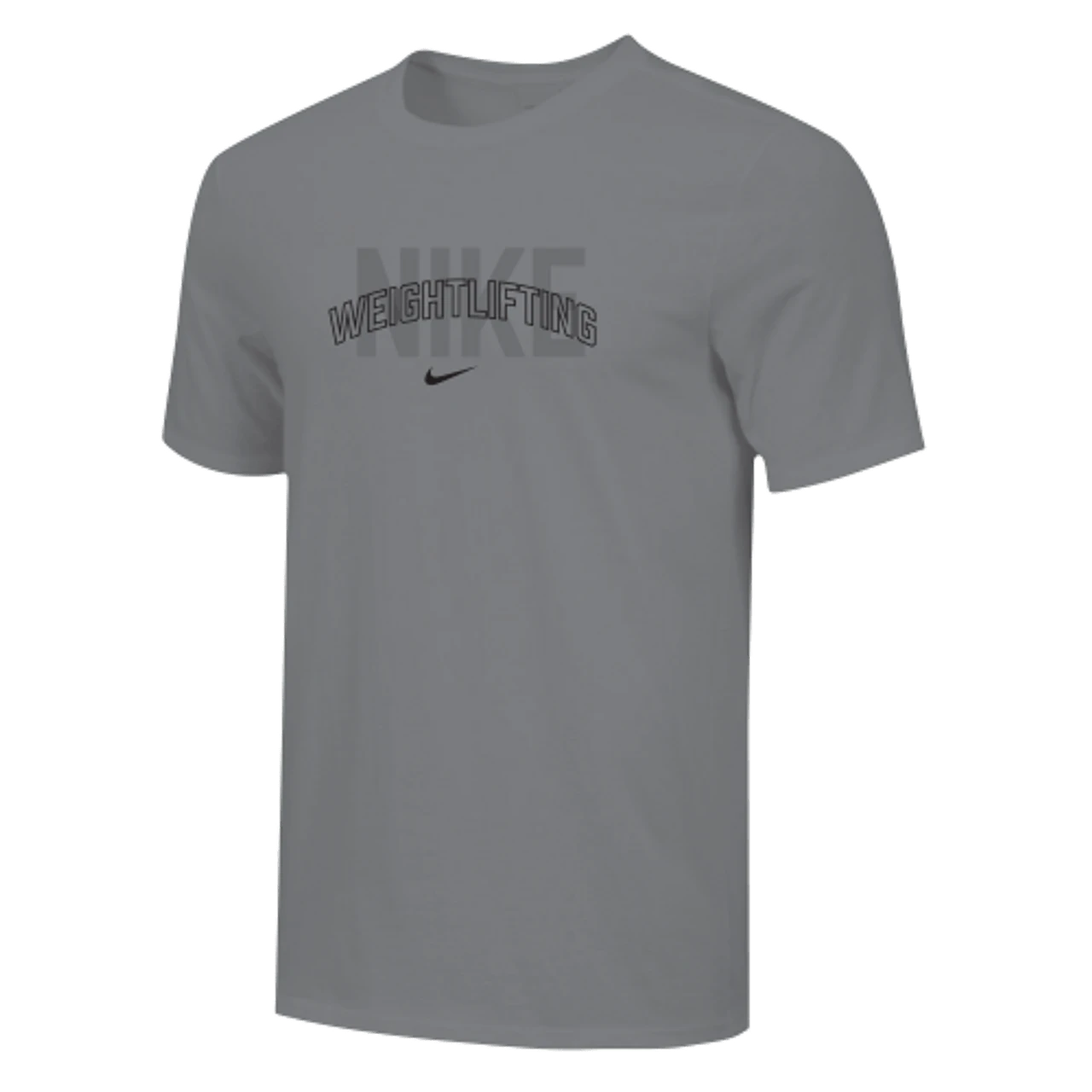 Nike Men’s Weightlifting Arch Tee –Â Grey – Form and function combine for a modernized look with less bulk in the Nike 100% Premium Ring Spun Cotton Tee.