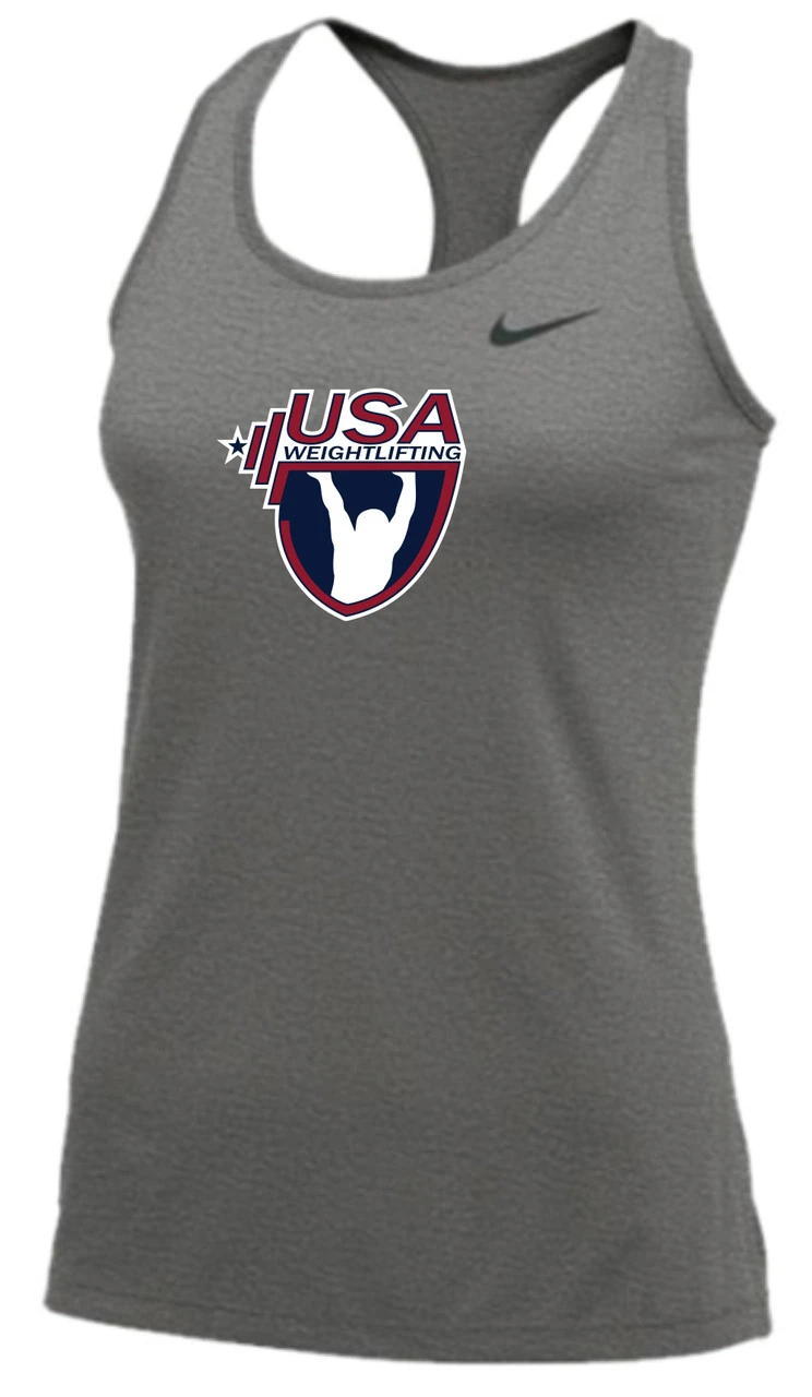 Nike Women’s USA Weightlifting Balance Tank – Performance ready, inside and outside. Go beyond the gym for warm weather workouts in the sweat-wicking Nike Dry Women’s Training Tank. Scoop-neck design and a body-slimming fit flatter your figure, as racerback straps and high-heat zone back mesh panels enhance ventilation. Nike Dry fabric helps you stay dry, comfortable and focused. Body-skimming fit lets you move freely. Racerback design allows for a natural range of motion. Scoop-neck provides flattering, feminine silhouette. Mesh panels on the back enhance breathability. 100% POLYESTER