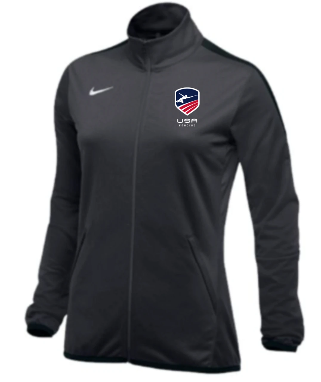 Nike Women’s USAF Epic Jacket – Anthracite – USA Fencing Dri-FIT technology helps you stay dry and comfortable. Textured knit fabric is breathable and lightweight. Full-length zipper and mock neck for custom coverage. Zippered pockets provide secure storage. Minimized cuffs and hem offer zero distractions. 100% POLYESTER ** Please allow 10 business days from order date for production** **THIS ITEM IS NOT AVAILABLE FOR EXPRESS SHIPPING**
