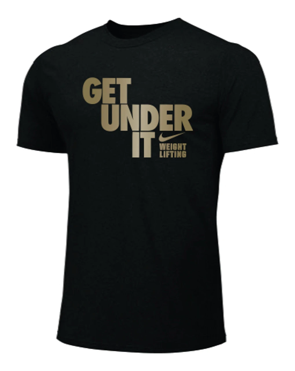 Nike Women’s Weightlifting Get Under It Tee – Black/Gold – Form and function combine for a modernized look with less bulk in the Nike 100% Premium Ring Spun Cotton Tee.